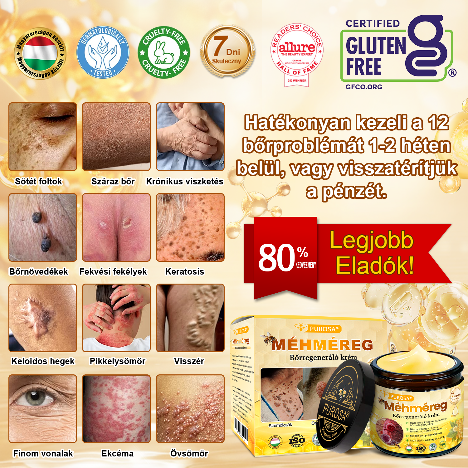 Elegük van a botox költségeiből és a hosszadalmas kezelésekből? Az előző bőrápoló termékek elbizonytalanították? Itt az idő, hogy visszanyerje önbizalmát az PUROSA® Méhméreg Bőrregeneráló Krém!